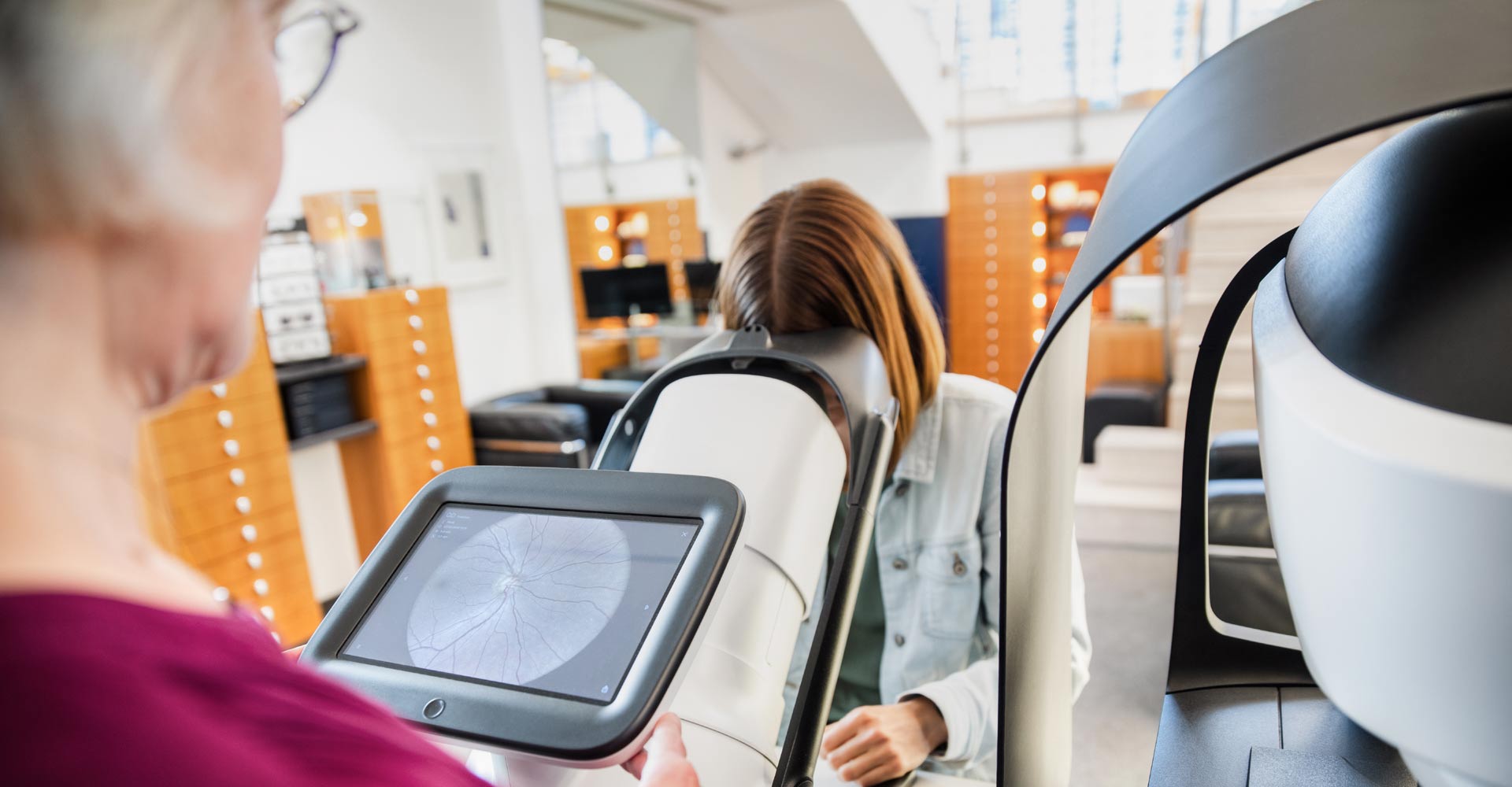 Unser Netzhaut-Screening stellt Veränderungen auch in sehr frühem Stadium fest – ohne Terminvereinbarung oder Wartezeit. Ihr Ergebnis erhalten Sie sofort.