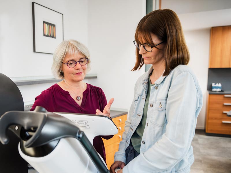 Ihr Ergebnis erhalten Sie direkt nach Ende der Auswertung. Unserer Screening-Experten erläutern Ihnen im Gespräch die Ergebnisse. Sollte eine Auffälligkeit festgestellt werden, erhalten Sie von uns Empfehlungen für die nächsten Schritte. Sie erhalten Ihren Screening Bericht selbstverständlich zum Mitnehmen – entweder in Papierform oder digital per E-Mail.